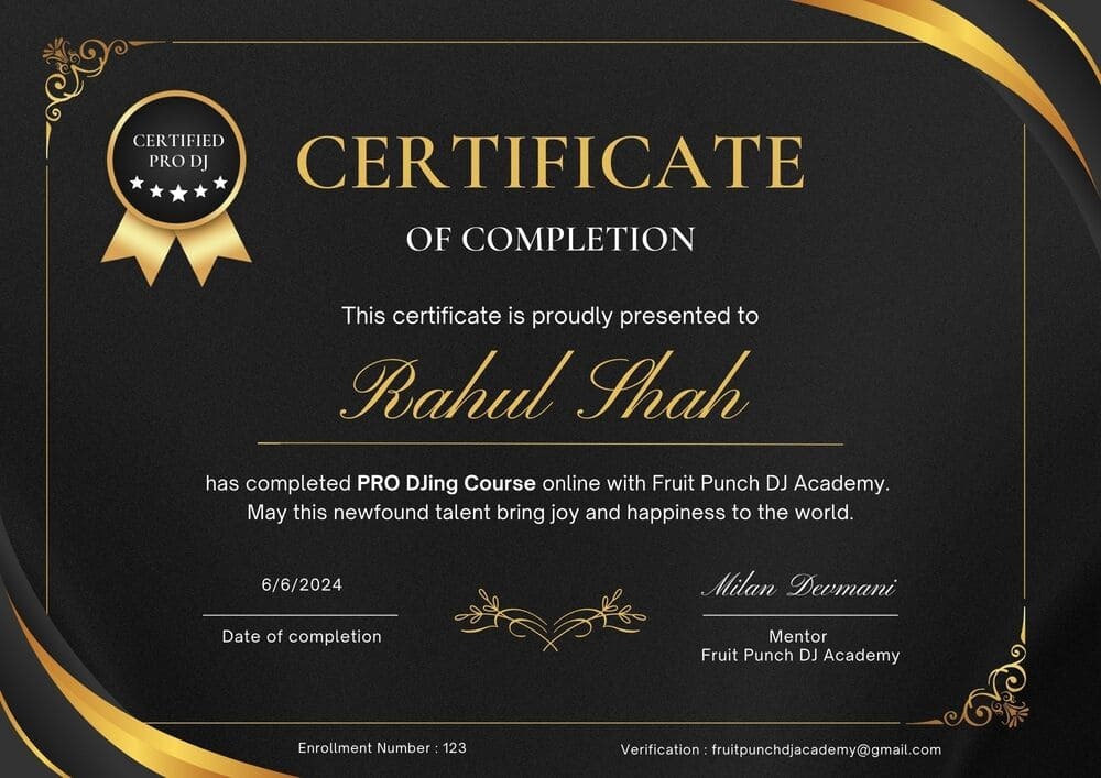 ” One of the best DJ academy in INDIA with a great sir like milan devmani he trains each student well with practical and theoretical parts giving individual attention to them, I am happy to be a part of this FRUIT PUNCH DJ ACADEMY I. If you want to be a DJ a great atmosphere and a place where you become better than others would recommend everyone to visit here~Thank you very much sir I am very happy to learn from you.”